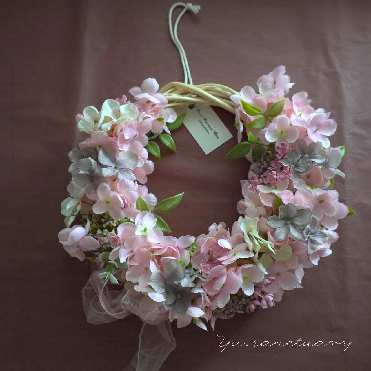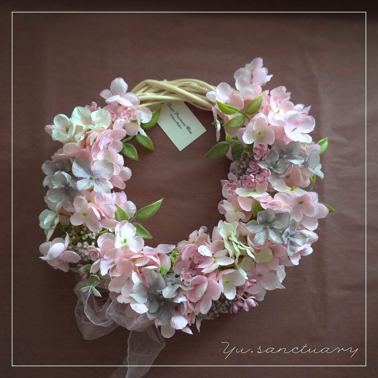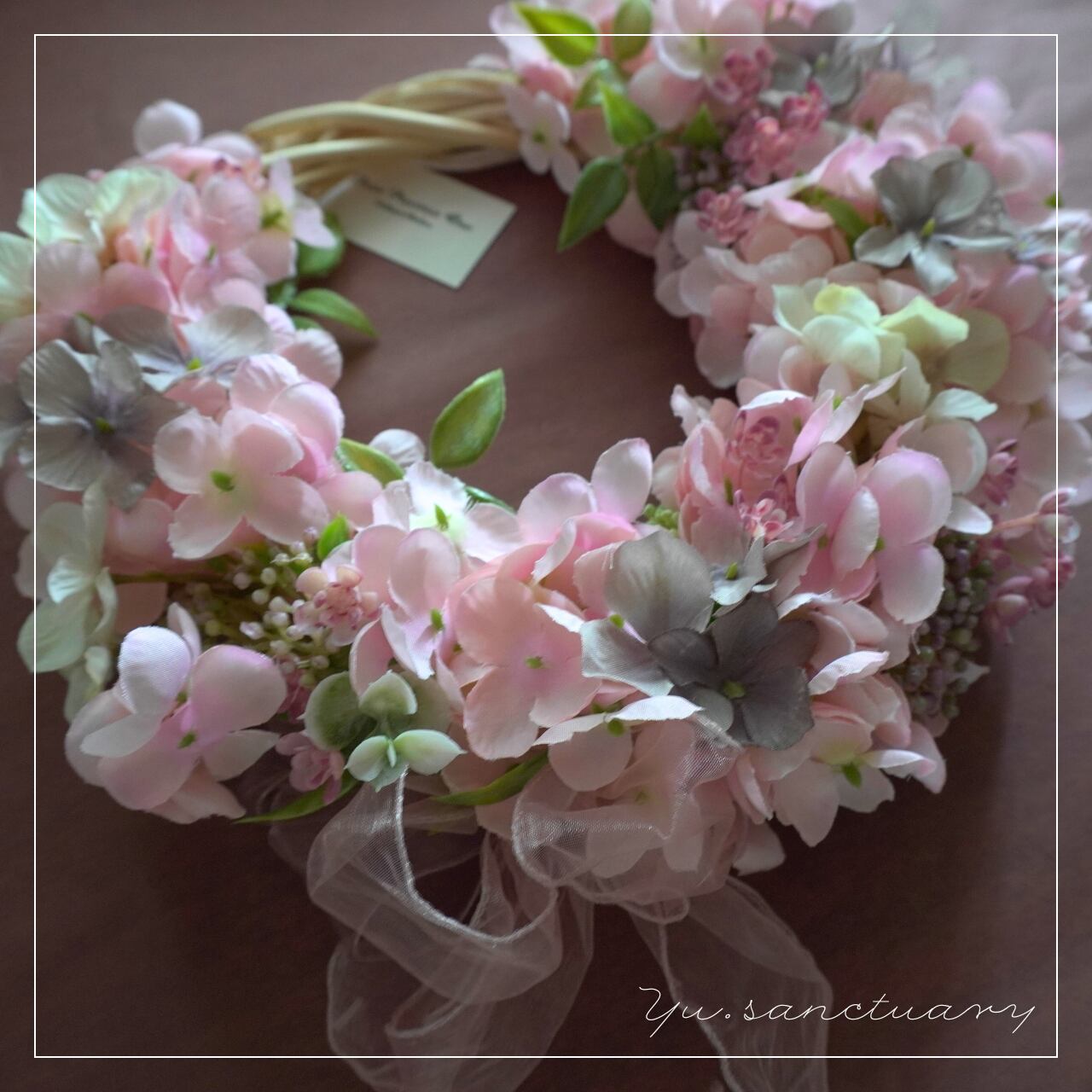 やさしい色のグラデーションが美しいリースができたらと思いました。