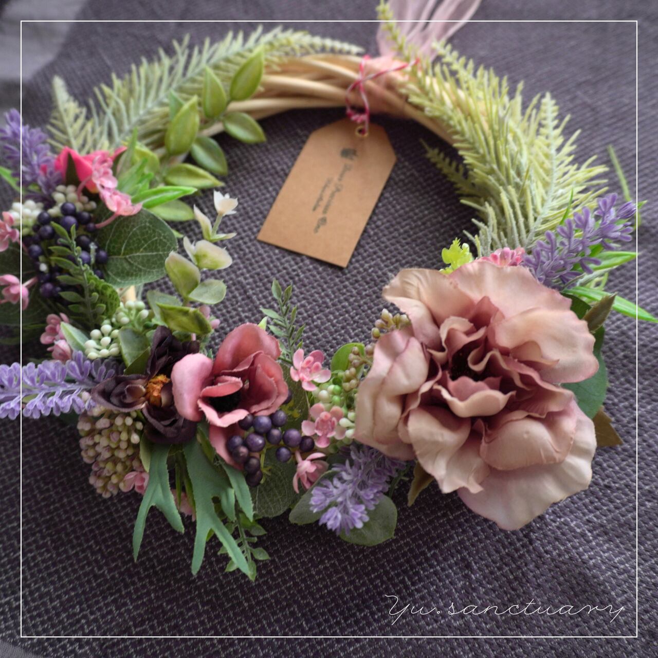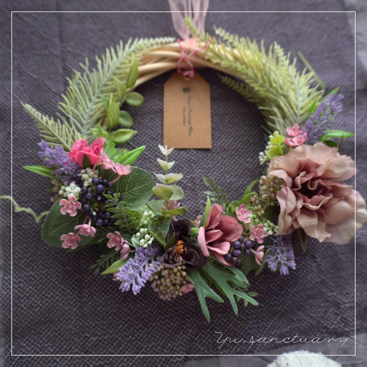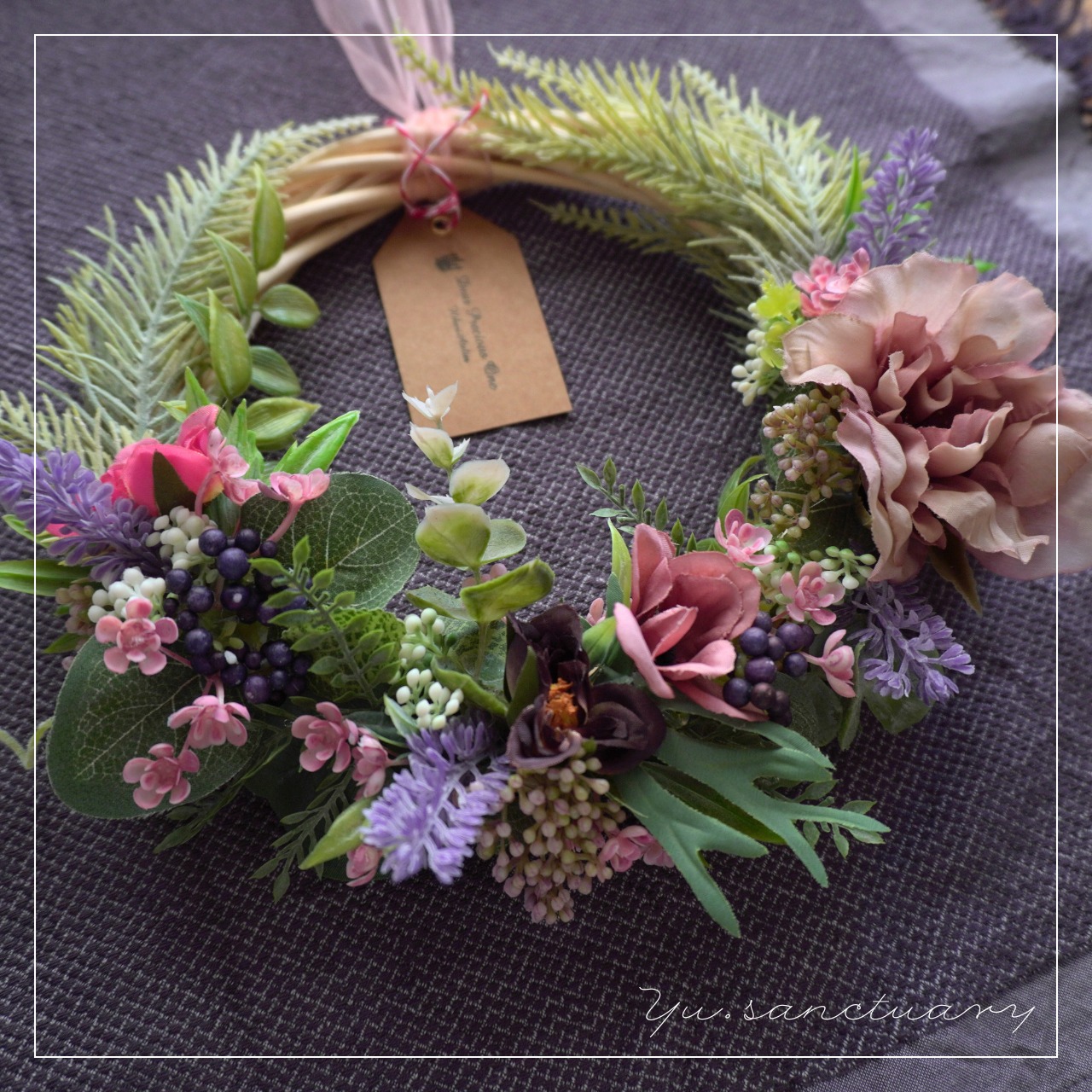 こちらは、『クリスマスローズと小花のリース:アーティシャルフラワーアレンジリース』です。