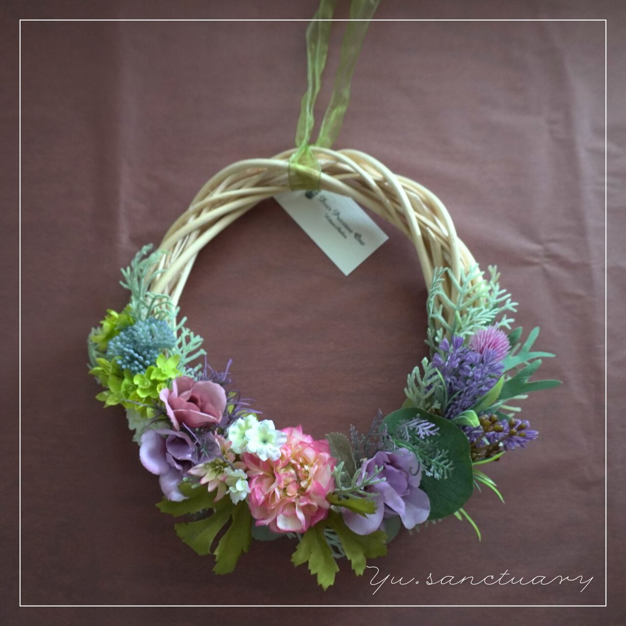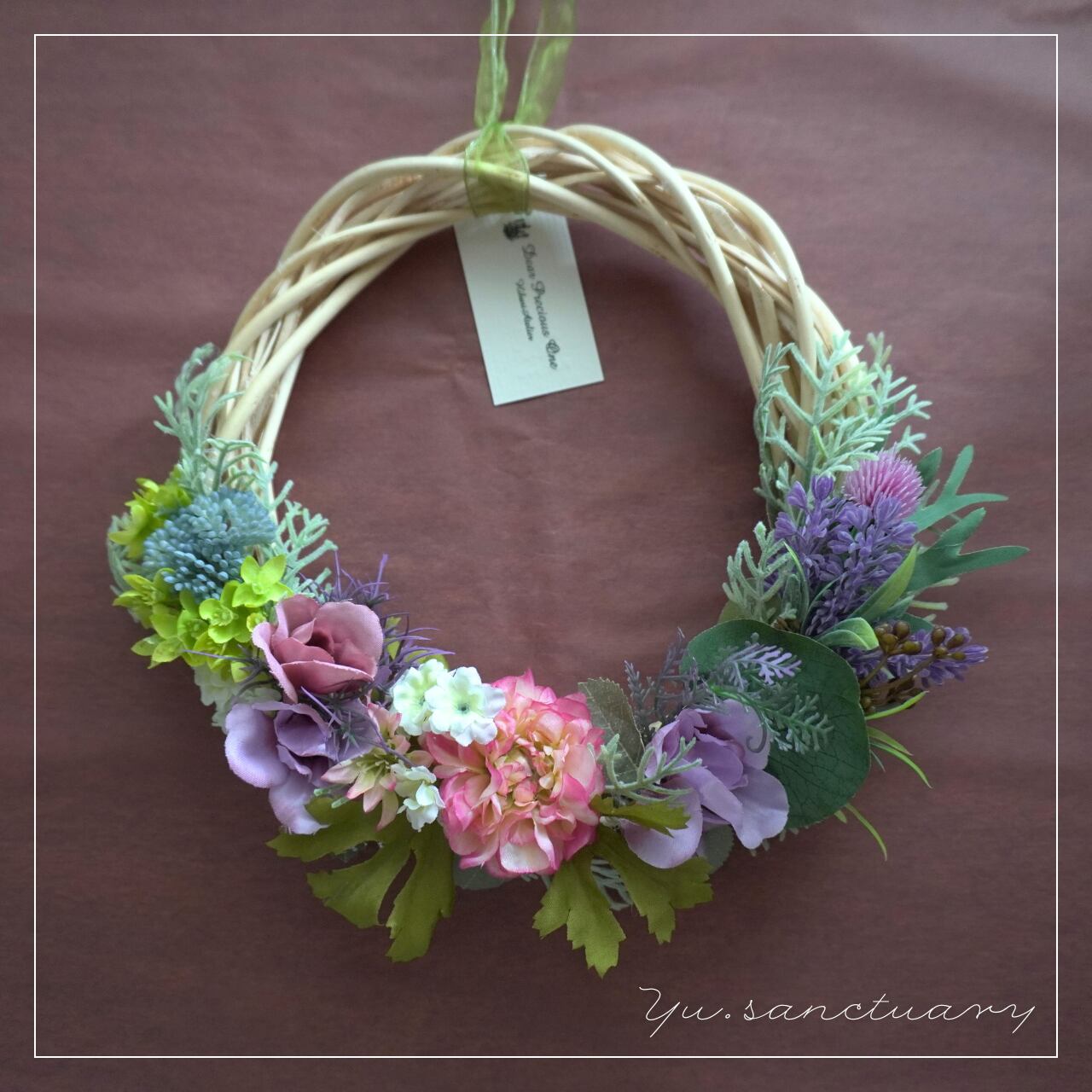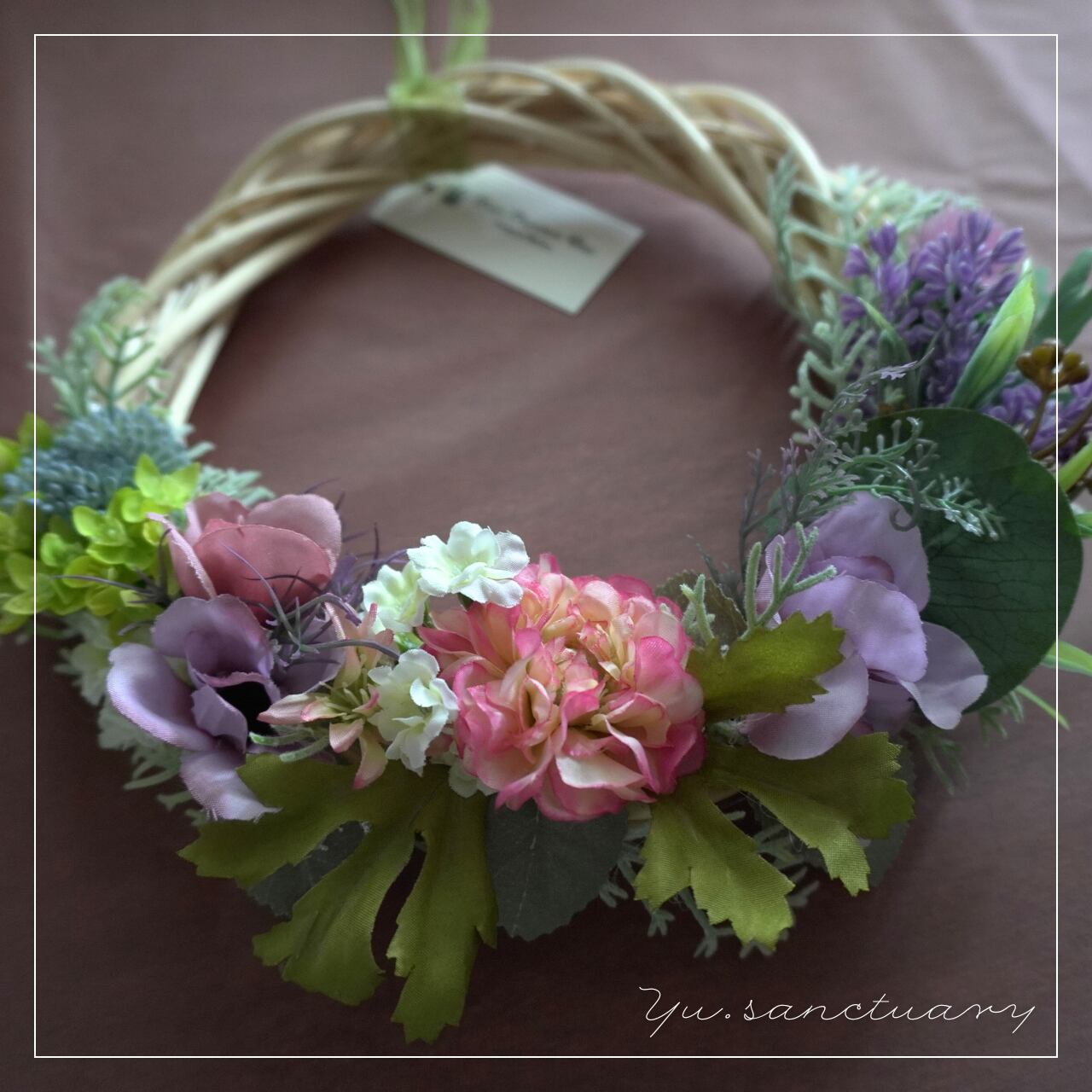 こちらは、『ピンクダリアとアネモネのリース:アーティシャルフラワーアレンジリース』です。