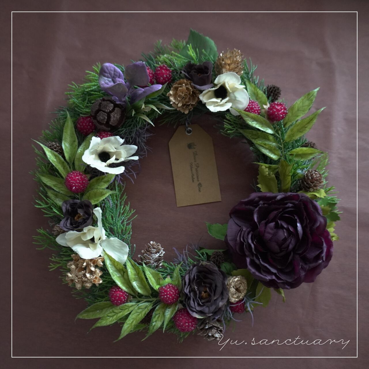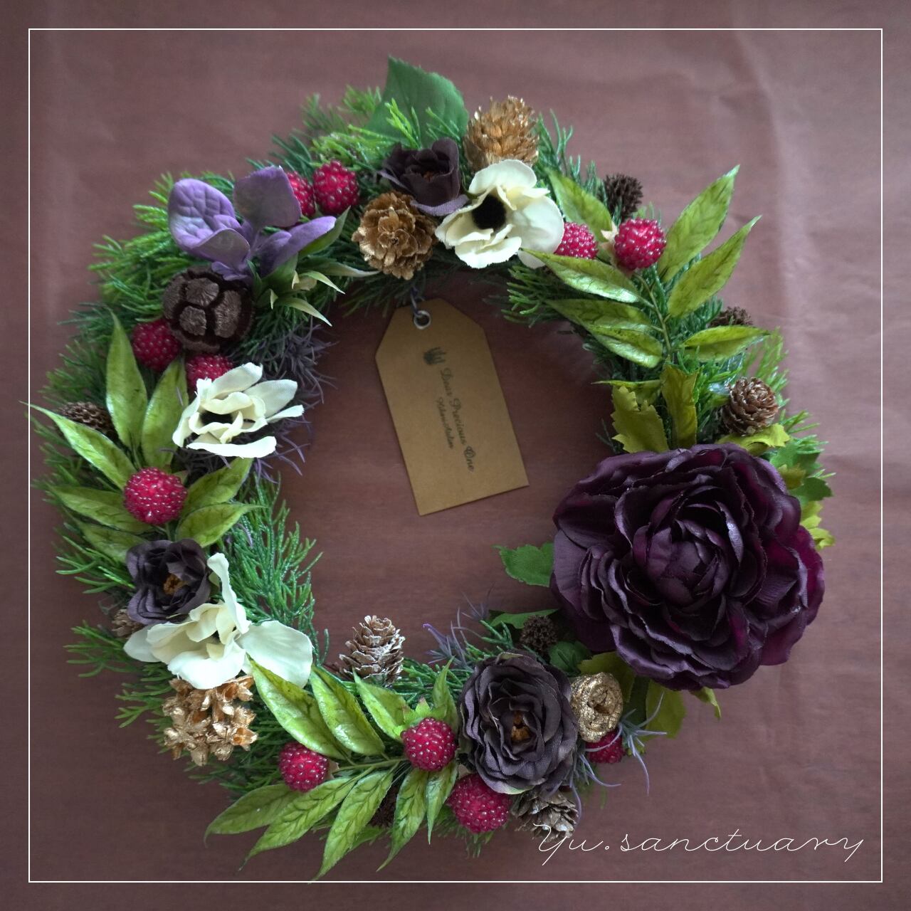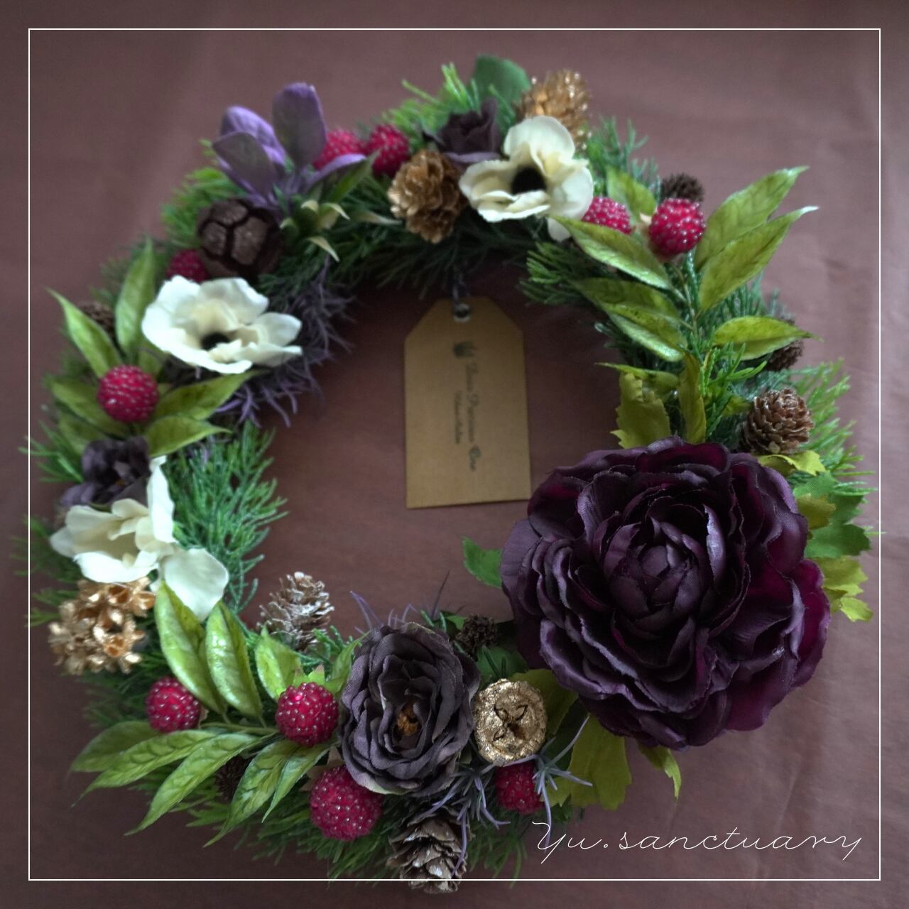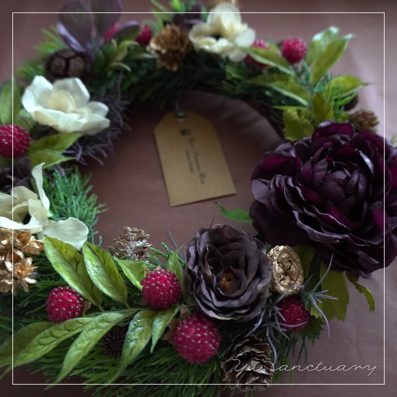 ラナンキュラスとベリーの彩りリース:アーティシャルフラワーアレンジリース